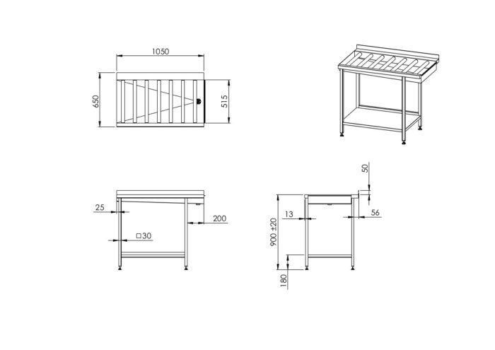 - splash guard at the back of the table with standard height of 50 mm (can be ordered with maximum height of 200 mm)